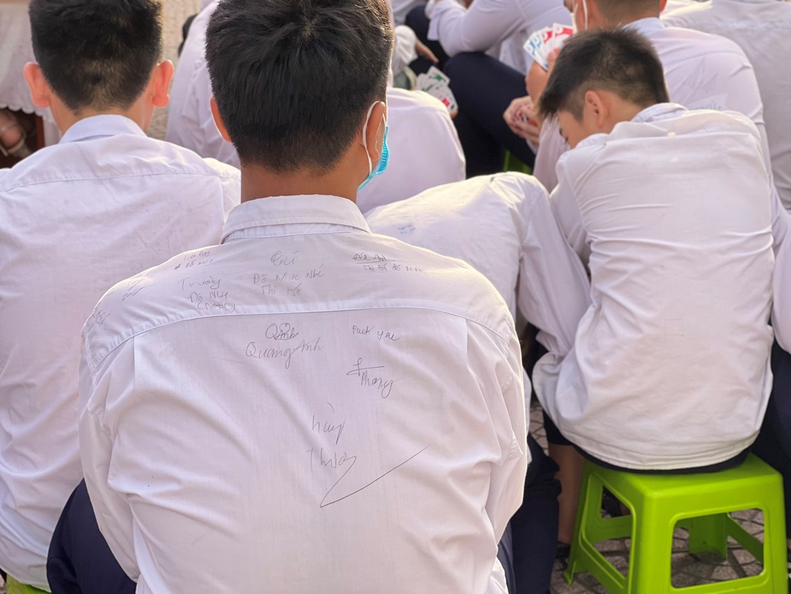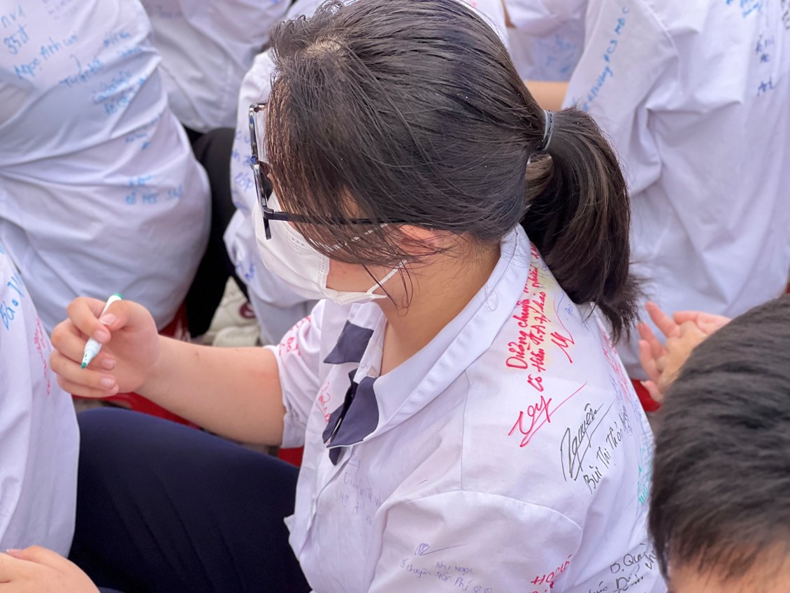 Các bạn học sinh cũng có nhiều cách để lưu giữ lại những khoảnh khắc đáng nhớ này. Bạn thì chụp ảnh, check in thật nhiều với từng bạn trong lớp, thầy cô, có bạn thì xin những dòng lưu bút trên áo, những lời chúc tốt đẹp dành tặng cho nhau. Xin chữ kí, lời chúc từ thầy cô của mình để sau này nhìn lại "thanh xuân ấy có thầy cô, có bạn và có em"