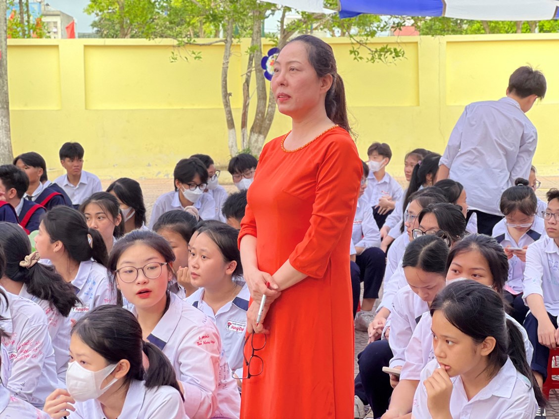 Mở đầu cho chương trình là bài phát biểu vô cùng xúc động của cô giáo Nguyễn Thị Thuý Hoàn- GVCN lớp 9A đại diện cho các thầy cô giáo nhà trường gửi tới các bạn học sinh.