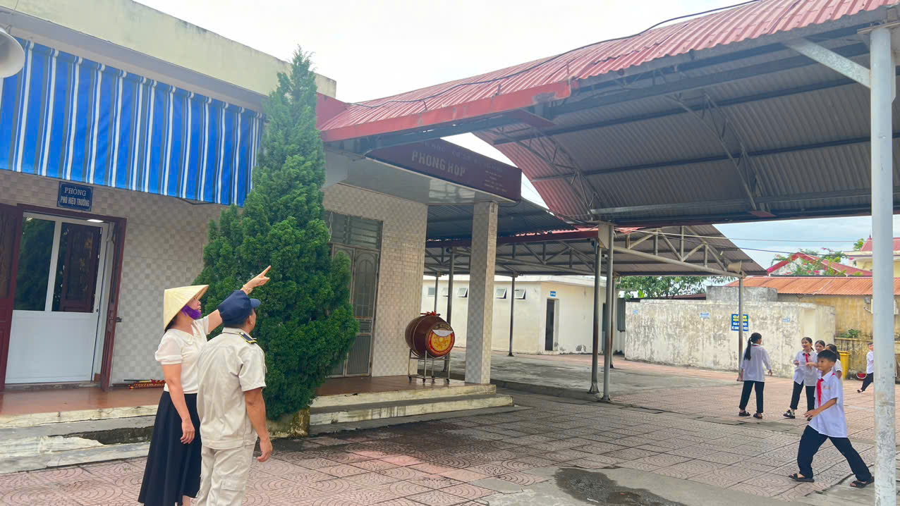 - Kiểm tra lại hệ thống cơ sở vật chất: Các phòng học, phòng chức năng, sân trường đã được kiểm tra kỹ lưỡng, đảm bảo không có vật dụng dễ bay, dễ rơi gây nguy hiểm.