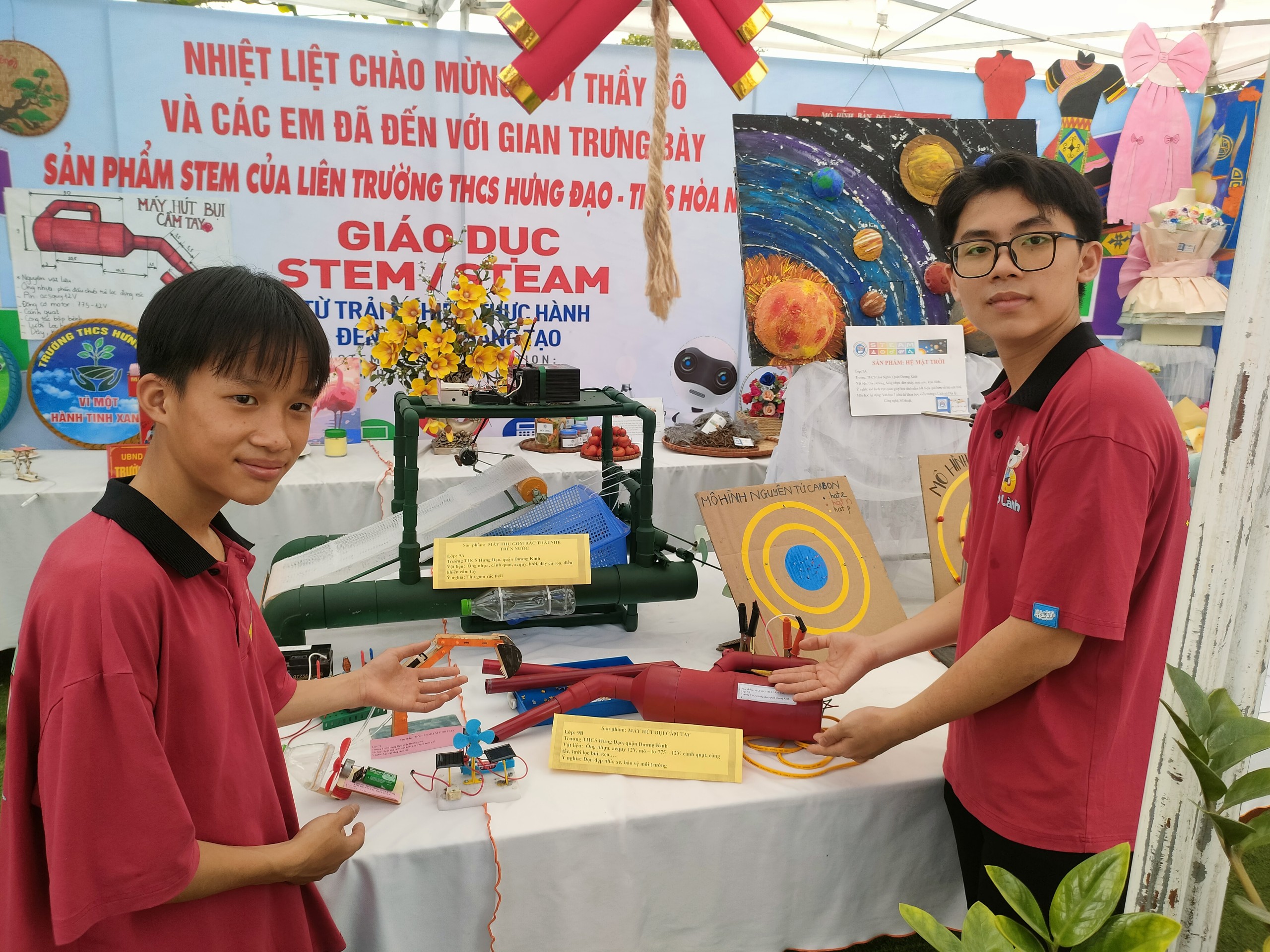 Để tham gia vào ngày hội stem cấp Quận, Trường THCS Hưng Đạo đã gấp rút chuẩn bị, đầu tư nghiên cứu chế tạo ra các sản phẩm mang tính khoa học công nghệ ứng dụng vào đời sống một cách thiết thực. Ngoài ra còn một số sản phẩm steam mang tính mỹ thuật thẩm mĩ dùng để trang trí, mô hình sản phẩm từ nguyên liệu tái chế thân thiện môi trường,...đa số các sản phẩm đều có tính ứng dụng vào thục tiễn đưa vào sử dụng trong cuộc sống. Dưới đây là một số hình ảnh sản phẩm :