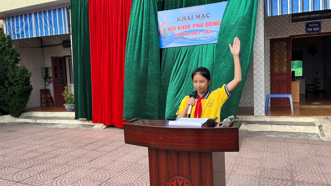 Hs Phạm Mai Anh lớp 7B5 đại diện cho các vận động viên tham gia các bộ môn thể thao tuyên thệ.