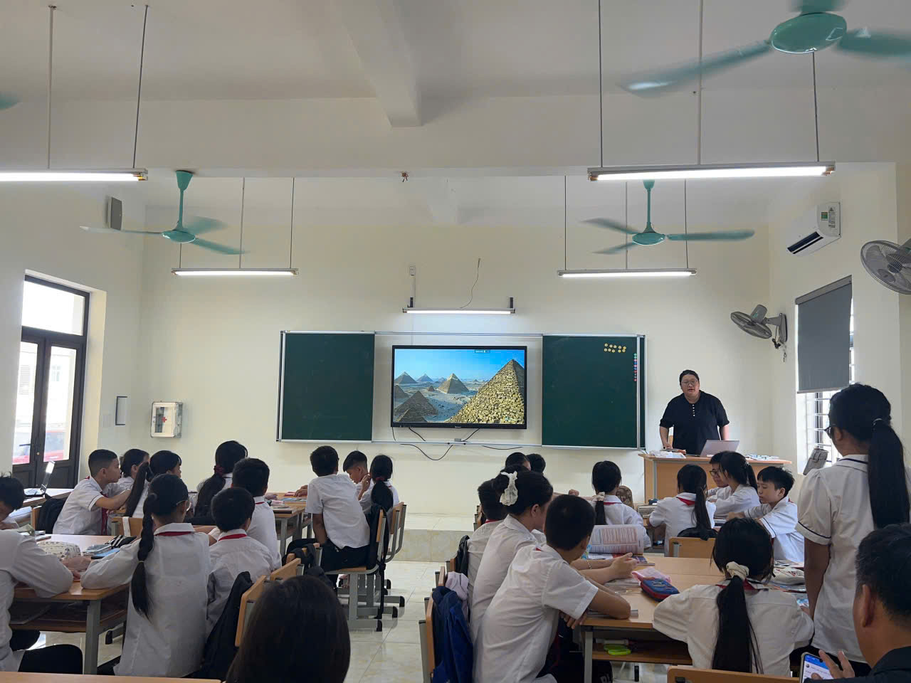 Trong buổi sinh hoạt, Cô giáo Vũ Thị Thu Hiền đã thực hiện dạy minh họa bài “Hình tam giác đều. Hình vuông. Hình lục giác đều” – môn Toán 6. Tiết dạy diễn ra trong không khí vui tươi, sôi nổi. Với bài dạy học “ STEM” của cô giáo, học sinh được thực hành cắt ghép tạo các ra các hình ảnh, bức tranh gần gũi với đời sống hàng ngày của các em. Sau tiết học tổ chuyên đã cùng nhau trao đổi, chia sẻ kinh nghiệm nhằm nâng cao chất lượng của tiết học. Sau đây là một số hình ảnh của tiết dạy: